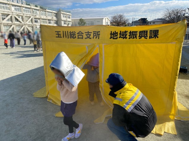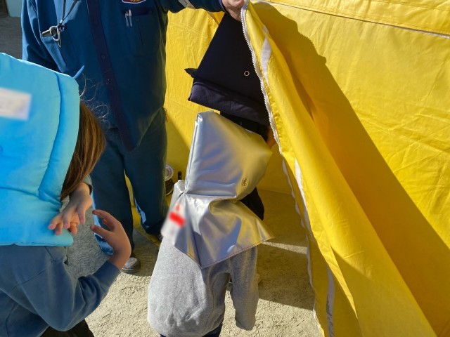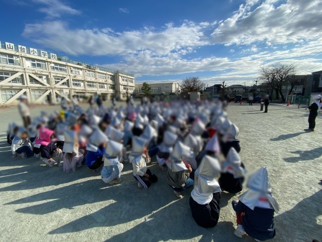 火事を想定した避難訓練を行いました。1年生・5年生・けやき学級は煙の中を避難する体験を行いました。