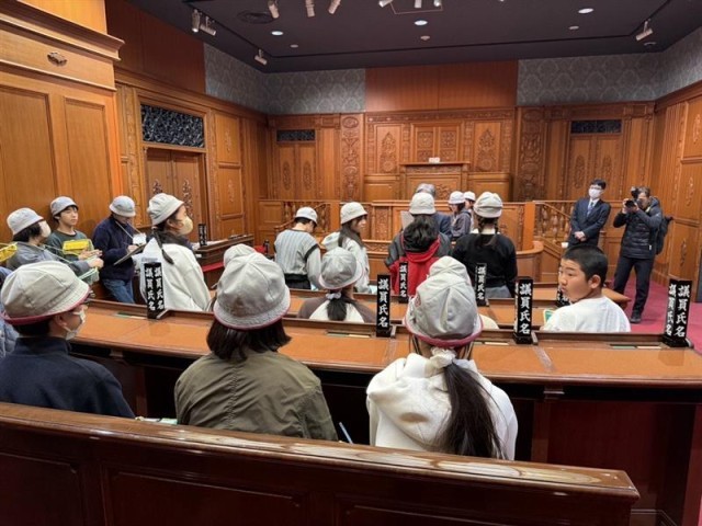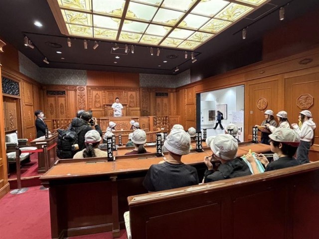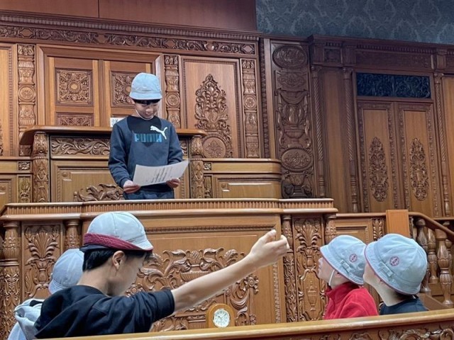 憲政記念館に到着しました。議会体験会、所信表明演説、法案採決体験です。