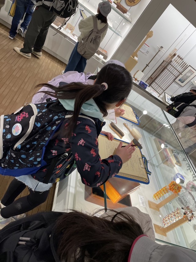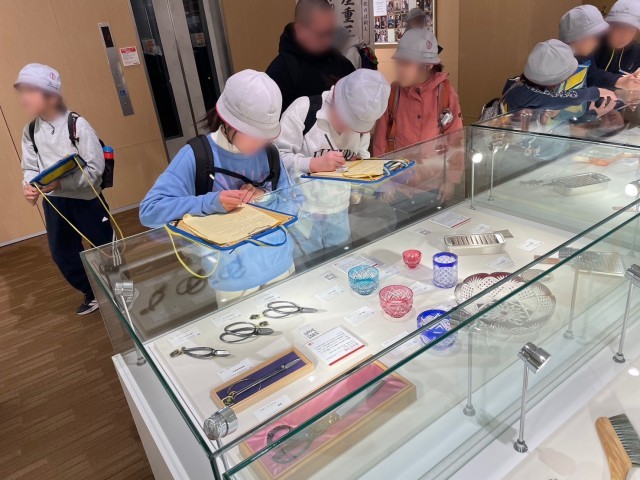 江戸たいとう伝統工芸館にて、様々な工芸品を見学しています。