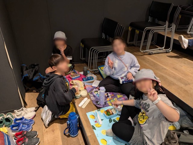 見学後、文化センターにてお弁当を食べます。