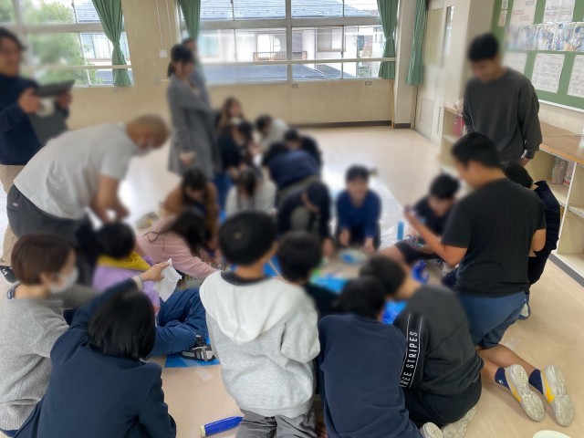 一緒にボッチャをしたり、アートを作ったりしました。