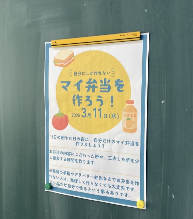 本日はお弁当最後の日でした。5年3組では自分で工夫してお弁当を作ってきたようです。