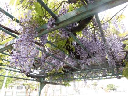 きれいなお花がさきました。プールわきの「ふじだな」もにぎやかになってきました。
