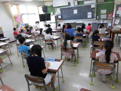 今日までが前半の学習支援期間でした。全学年で基本的な学習と発展的な学習に取り組みました。国語と算数の基本的な内容やタブレットや図書を利用して調べる学習をすすめました。後半は24日(月)から始まります。しばらく暑い日が続きそうですが、熱中症に十分に注意をして、健康第一でお過ごしください。