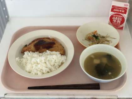 今日の給食は、ごはん、ジャンボぎょうざ、塩ナムル、わかめスープ、牛乳です。