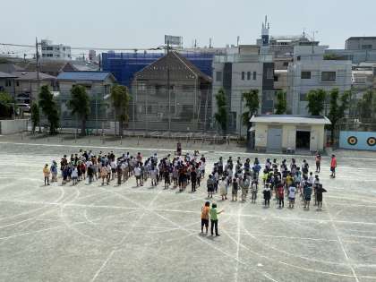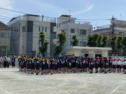 各クラスのリーダー12名を中心に練習を積み重ねてきました。毎回の振り返りを大切に、できていることや次に生かすことなどをみんなで話し合ってきました。本番の前には、みんなで集まってこれまでの頑張りや今日への意気込み、頑張った仲間に感謝を伝える集会を行いました。みんなで一つのものを創り上げるよさを感じられた運動会になりました。応援の声援や温かな拍手をいただきありがとうございました。