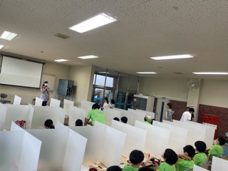 食事の際にはパーテーションを設置して、感染防止対策をしています。