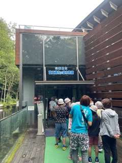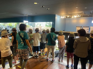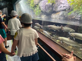 「富士湧水の里水族館」の魚や生き物たちを見て、沢山の歓声が上がっています。