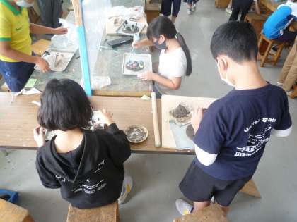 11月の展覧会に向けて家庭科や図工では作品作りに取り組んでいます。家庭科では染め物、図工では立体作品など一つ一つの作品に思いを込めて作っています。
