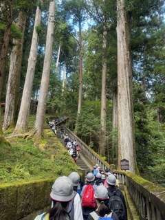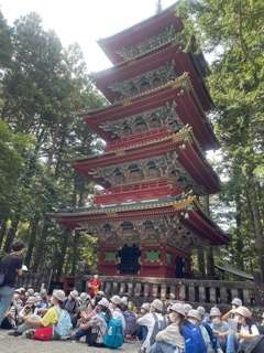 家康の墓に向かってきつい坂を登ります。ひととおり各クラスで見学した後、五重塔の前に集合しました。