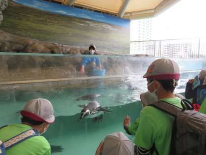 けやき学級、2年ぶりの社会見学です。お天気にも恵まれ、安全に気を付けて品川水族館に向かって出発しました。今回の学習のめあては、「マナーを守る」です。電車内では、一言も話をせず静かに過ごすことができました。水族館では、他のお客さんにも気を付けながら、グループで協力して見て回りました。お気に入りにのペンギンを見付けたり、イルカショーを楽しんだり、あっという間の2時間でした。お弁当を食べた後、公園で遊びました。「全部楽しかった。」との感想の声が聞こえてくるほど、楽しい一日となりました。