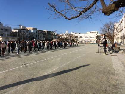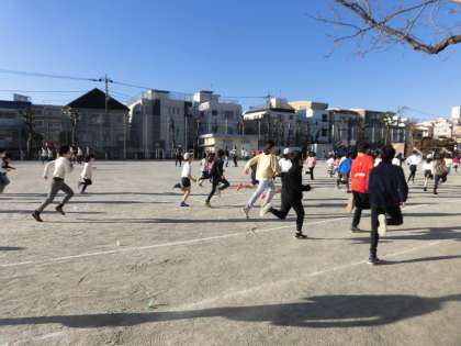 昨日に引き続き。今日は2・4・6年生とけやき学級の「エンジョイ ランニング」の体育朝会です。今朝もとても寒かったですが、子どもたちは元気よくランニングしていました。来週から休み時間を使って「エンジョイ ランニング」が始まります!