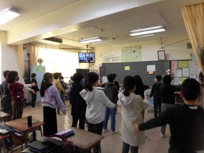 曲名は「いつだって」と「ディズニーメドレーでパーティー」です。6年2組さんの録画を見ながら、各教室での実施でした。感染拡大防止予防のため、歌は小さな声で、心の中で・・・でしたが、子どもたちは振り付けで気持ちを表現していました。どの学年もとても楽しそうでした。