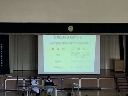 薬物乱用防止教室を行いました。これから中学生になり行動範囲が広がる子ども達に、薬物の恐ろしさや危険性、周りに流されない意思や勇気をもつなど、改めて感じとってもらうことができました。また、医薬品の正しい扱い方についても知ることができました。