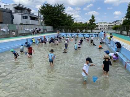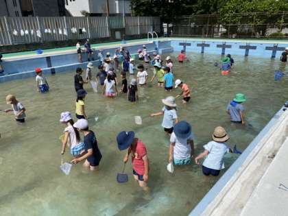 プールの清掃前に、2年生の子どもたちがヤゴを救出しました。みんな夢中になって活動し、予想以上にたくさんのヤゴを救出することができました。羽化することを楽しみに、教室で飼育、観察をしていきます。