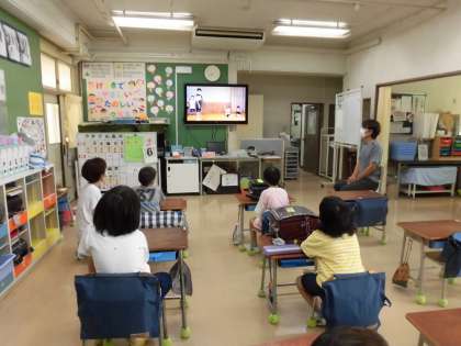 今年度も児童集会はオンラインです。今月の児童集会は、「ちょっとおかしな七夕物語」と「ちょっとおかしな桃太郎」を劇団集会委員さんの演技をみんなで鑑賞しました。