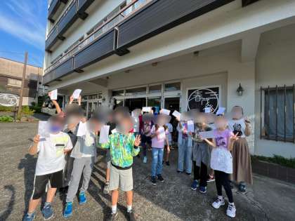 朝食です。昨晩、食堂で毎回用意されていたマスクケース(封筒)をこっそり持ち帰り、春茂登さんへ感謝のお手紙を書きました。今朝食道へ持って行き、子どもたちから「感謝のサプライズ作戦」決行しました!