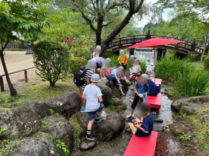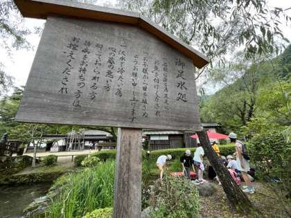 日光江戸村 御足水処で江戸時代の涼み方を楽しんでいます。