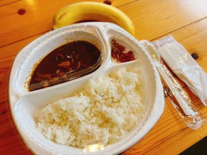 昼食は日光江戸村にてカレーライスとバナナです。最後の食事です。