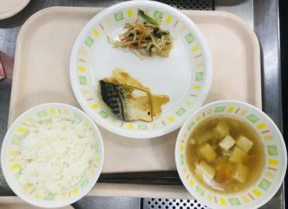 ごはん、さばのみそ煮、おひたし、豆腐汁、牛乳です。