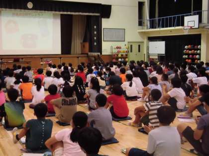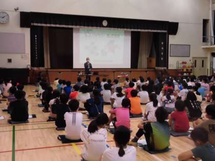 学校公開2日目の5校時に、体育館で出前授業が実施されました。6校時は保護者向けの講座でした。