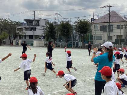 今年度は「学校2020レガシー校」です。陸上の体験授業で、アスリートの方による出前授業です。