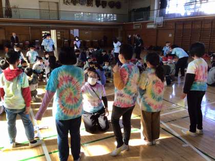 5年生が全体のリーダー役を務め、「もうじゅう狩り」の遊びも楽しみました。