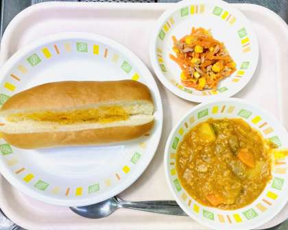 マーマレードサンド、牛乳、ハンガリアンシチュー、にんじんサラダです。