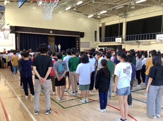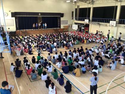 今日は児童集会がありました。 内容は「先生クイズ」です。