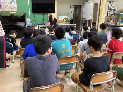 今年度も5月より、土曜授業の朝の時間は百音の樹の方々による「お話会」です。