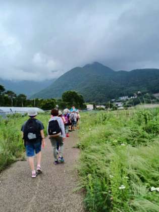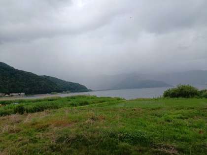 大石公園へ河口湖が見えます。