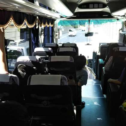 帰りのバスの様子と帰校式の様子です。無事に帰ってきました。