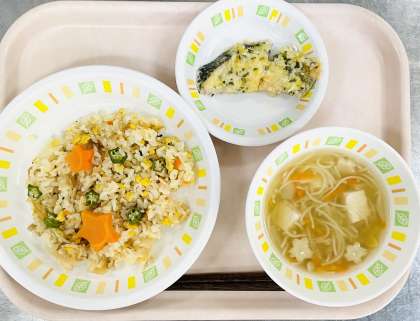 たなばたずし、牛乳、白身魚のマヨネーズ焼き、たなばた汁です。
