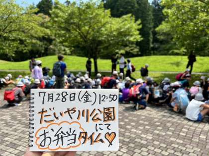 外が暑すぎるので、景観公園での昼食は止めて、日光だいや川公園に変更しました。