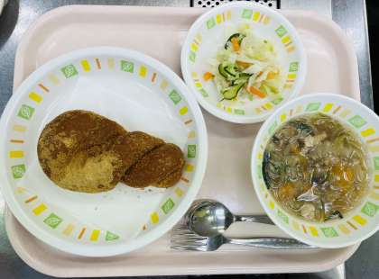 あげパン(きな粉)、牛乳、春雨スープ、コールスローサラダです。