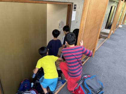 朝会、朝食が終わり、部屋の片付けです。