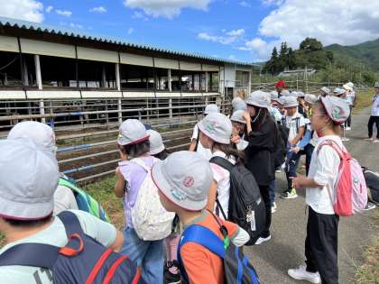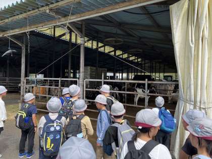 牛舎で牛を見ました。