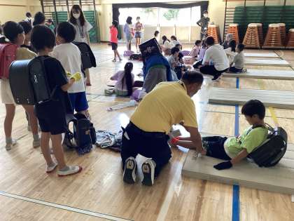 本日3・4校時に体育館にて高齢者類似体験を行いました。