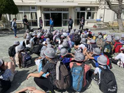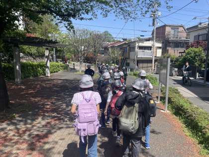 4年生遠足で、「林試の森公園」へ向かっている様子です。