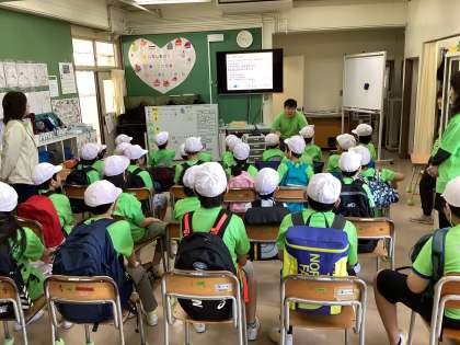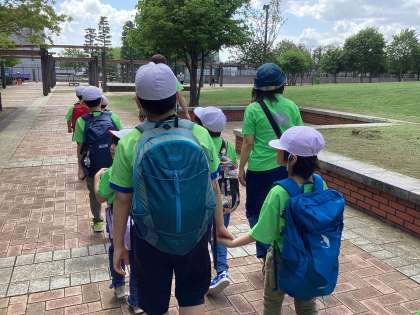 今年度初めての歩行学習です。交通ルールを守ってぽかぽか広場へ行きました。