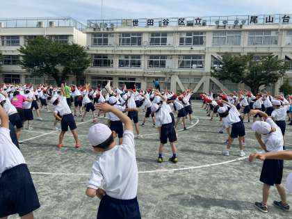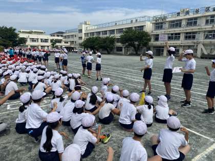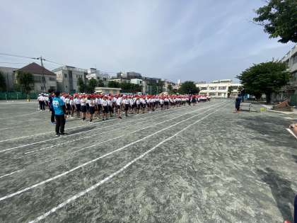 1回目の全校練習です。準備運動や応援の練習など、本番で実力が出せるように練習を頑張っています。
