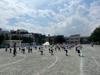 1年生の運動会練習の様子です。小さな体を大きく動かし、ダイナミックな踊りを表現できるように頑張っています!