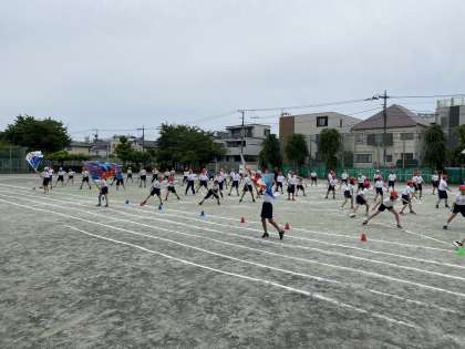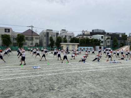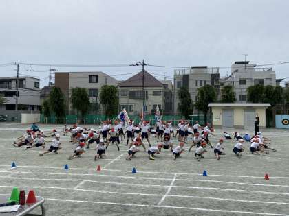 5年生の運動会練習の様子です。勇ましく大漁旗を振り、全員で大きな声を出しながら本番に向けて元気よく練習をしています!