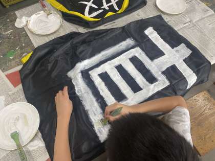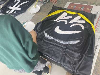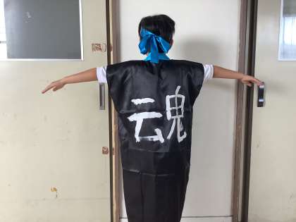 5年生が南中ソーラン節に向けて準備をしている様子です。今日は本番と同じように半被を着て練習をしました。