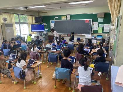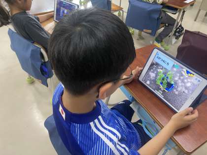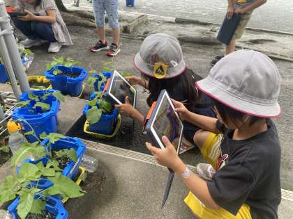 生活科の授業でアサガオの観察を行いました。先日配られたタブレットを使用し、アサガオの様子を写真に撮り、記録してクラスの友達と共有しました。