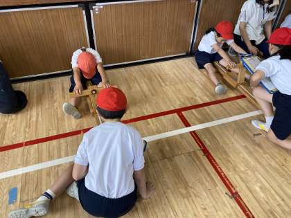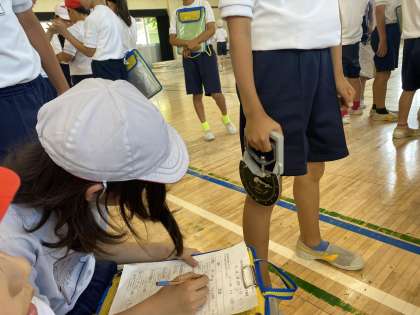 ペア学年で協力し、体力テストを行いました。上級生が下級生を優しくリードする姿も多く見られ、良い交流ができました。