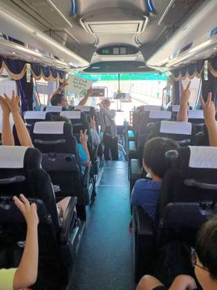 バスの中で楽しくレクリエーションを行い、無事に到着しました。