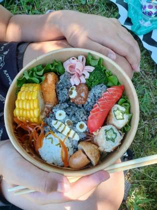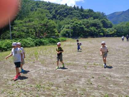 お弁当を食べた後、皆でおにごっこをしました。