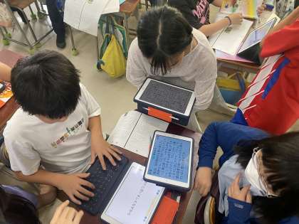 教育指導課訪問による、国語『帰り道』の研究授業です。「行こっか。」というセリフを登場人物のどちらが言ったのか、自分なりの根拠を説明しながら意見を交流させました。