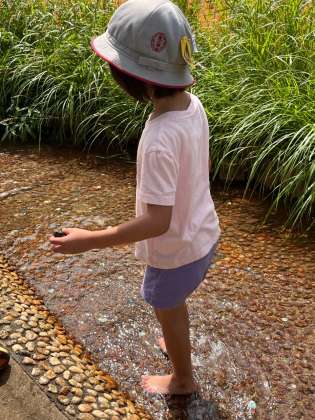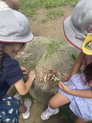 授業で習った草相撲に使えそうな草を探したり、水遊びを行ったりしました。